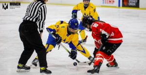 Третій період збірна України розпочала в атаках, але реалізувати жоден із тих моментів не вдалось. До середини періоду суперниці обмінялись атаками, кожну із яких нейтралізували воротарки. За 8 хвилин до завершення матчу Дарія Цимиренко відкрила рахунок для нашої команди. За майже дві хвилини після цього українки мали найкращий момент періоду, але суперниці порушили правила й відбили удар. Зіграли в більшості на останніх хвилинах — ще й із порожніми воротами.